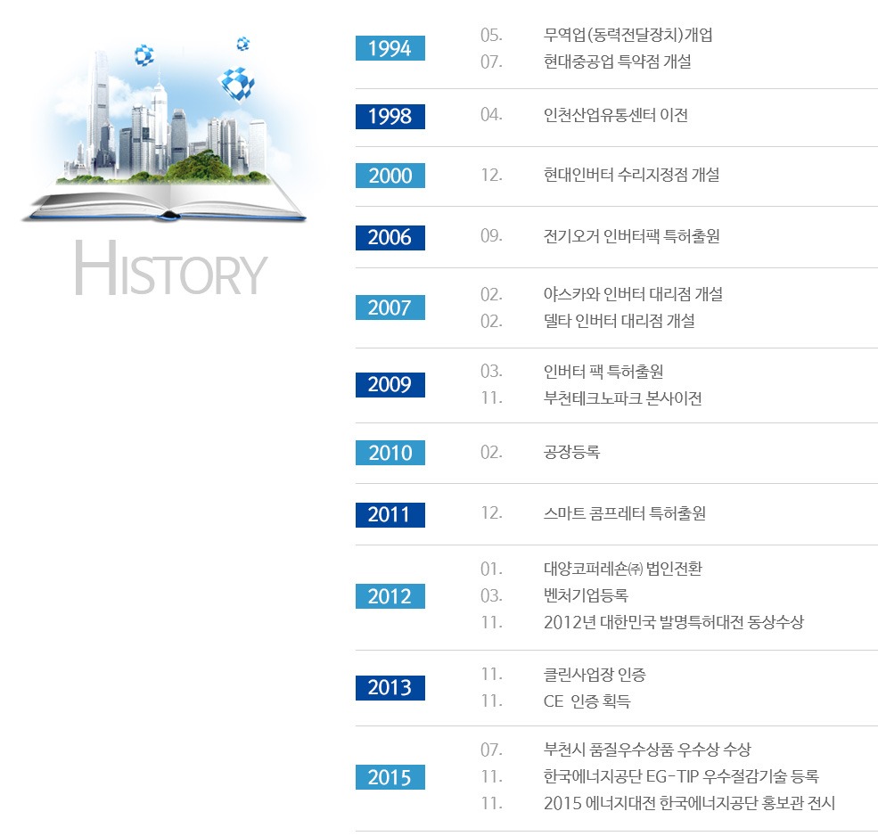 대양코퍼레이숀의 시작부터 현재까지의 활동입니다.